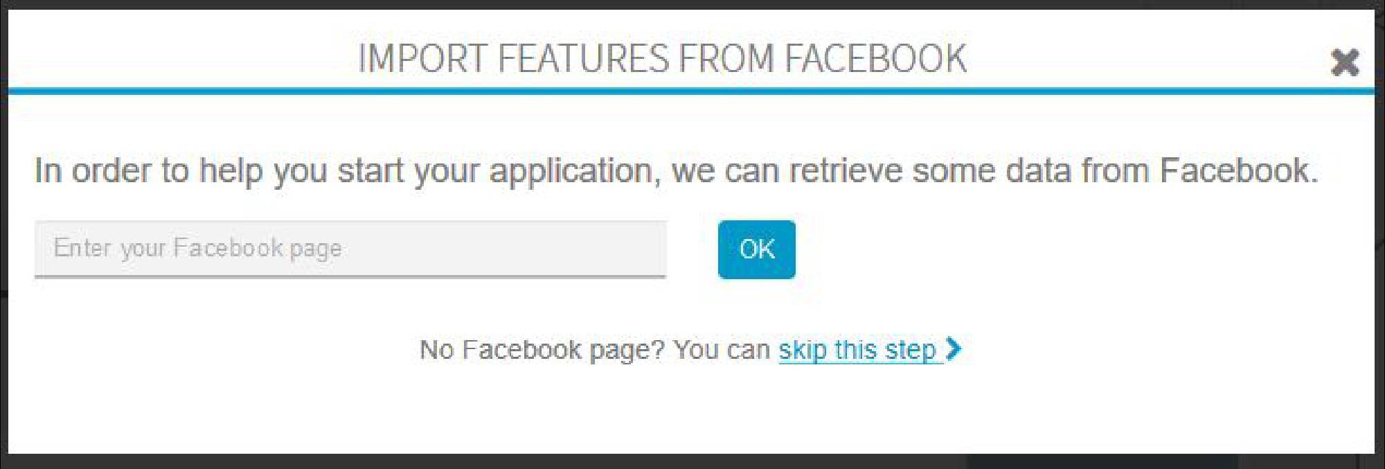 Просто введите имя своей страницы Facebook, и содержимое будет импортировано автоматически, приложение будет создано с помощью контента из Facebook, например, на странице контактов, картинной галерее, в календарных записях и в местах.